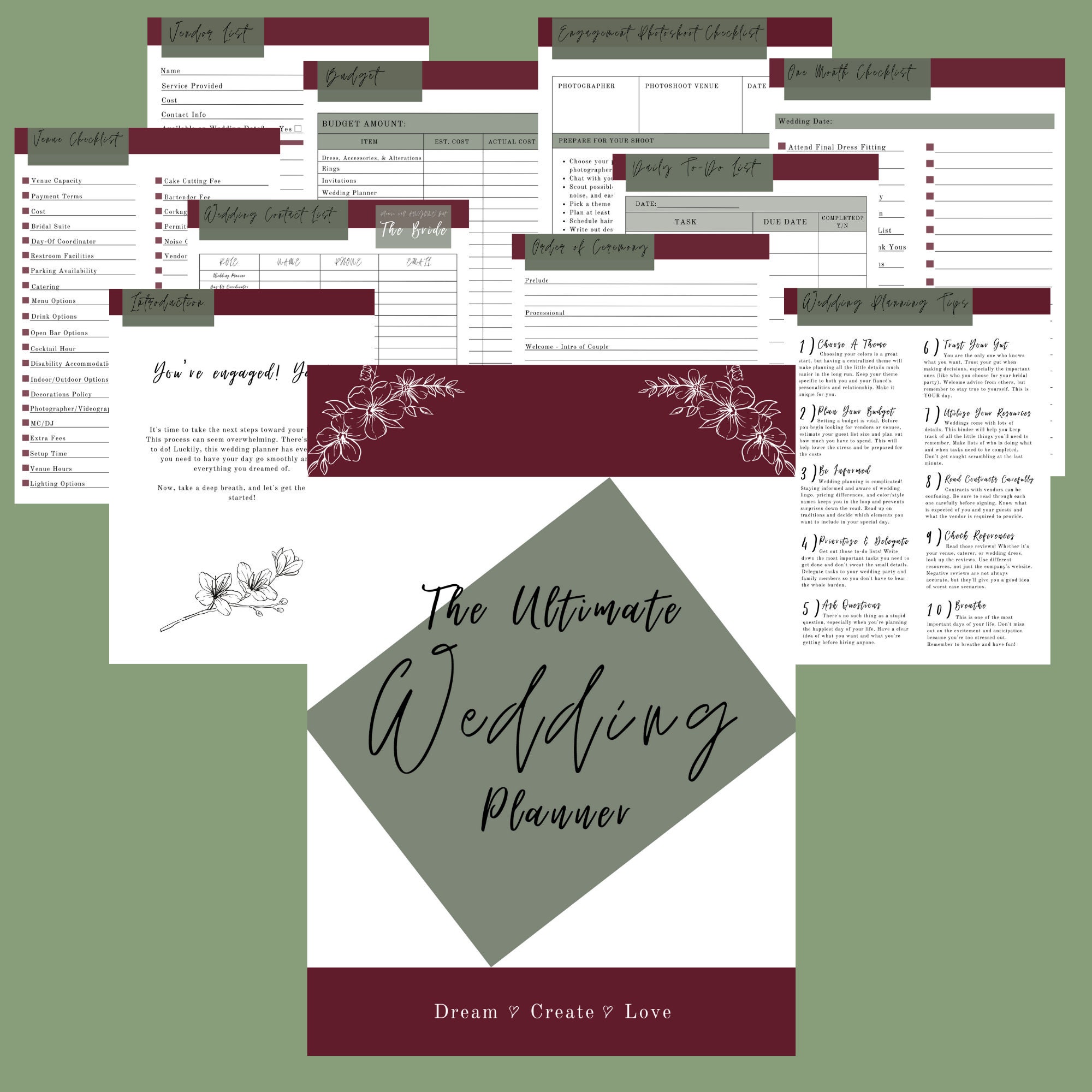 Printable Ultimate Wedding Planner Sage Burgundy Etsy